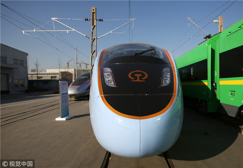 2018年12月24日,北京,中國鐵路科技創(chuàng)新成果展在國家鐵道試驗(yàn)中心舉行。新型復(fù)興號(hào)動(dòng)車組實(shí)車首次公開亮相,現(xiàn)場(chǎng)體驗(yàn)乘車運(yùn)行。視覺中國