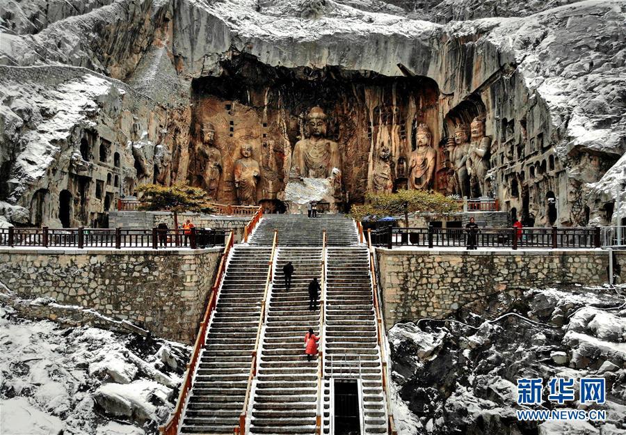 當日,雪后的河南洛陽龍門石窟景區(qū)銀裝素裹,一幅天然的水墨畫卷徐徐展開。