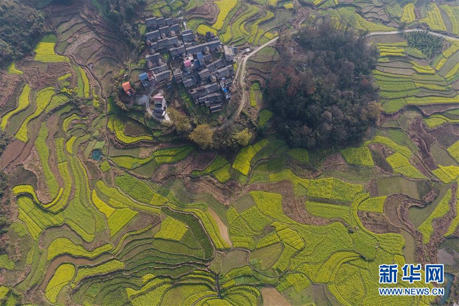 廣西融安縣東起鄉(xiāng)長豐村的田園春色(3月10日無人機拍攝)。 近日,隨著氣溫持續(xù)回升,廣西融安縣境內的油菜花開放,春意盎然。 新華社記者 黃孝邦 攝