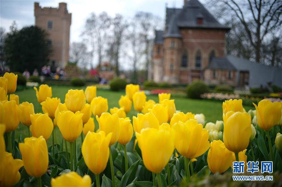 這是4月6日在比利時布魯塞爾西郊的拜加登城堡拍攝的郁金香。 為期一個月的第16屆布魯塞爾國際花展于4月6日到5月5日在布魯塞爾拜加登城堡舉行,共展出約500種、超過100萬株鮮花。盛放的郁金香、水仙花、風信子等花卉與古樸的城堡一起構成了一幅美麗的畫卷,吸引了大批游客前來參觀。 新華社記者張鋮攝