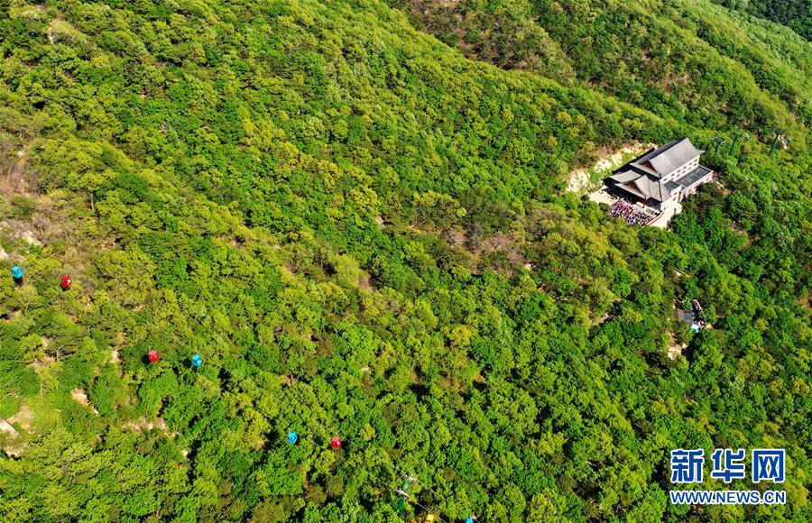 一處建筑坐落在盤(pán)山風(fēng)景名勝區(qū)的森林中(5月2日無(wú)人機(jī)拍攝)。新華社記者 岳月偉 攝