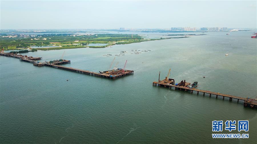 這是7月6日無人機(jī)拍攝的湛江調(diào)順跨海大橋建設(shè)現(xiàn)場(chǎng)。  新華社記者 劉大偉 攝