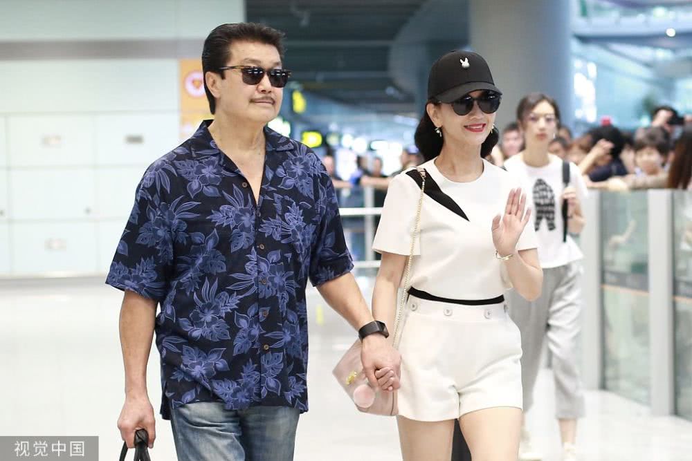 2019年8月10日,北京,趙雅芝與老公黃錦燊現(xiàn)身機場。