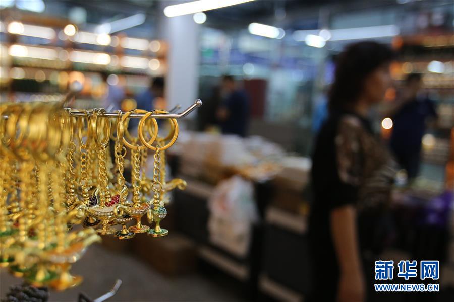 9月4日,在新疆塔城地區(qū)巴克圖口岸,顧客在絲路文化商品城內選購商品。 新華社記者安希雅攝