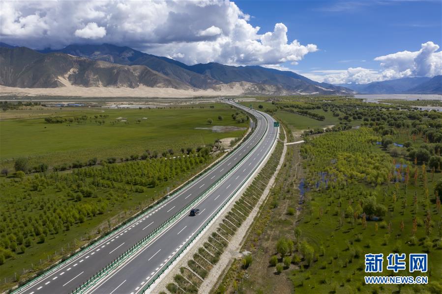 雅魯藏布江沿岸的公路(9月10日無人機拍攝)。 新華社記者 旦增尼瑪曲珠 攝