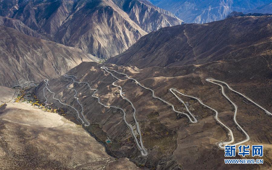 這是“怒江72拐”,該處位于西藏自治區(qū)昌都市八宿縣境內(nèi),是川藏線上一段艱險(xiǎn)與美景并存的山路(10月23日無(wú)人機(jī)拍攝)。全長(zhǎng)2000多公里的川藏公路,從成都開(kāi)始,一路向西到終點(diǎn)拉薩,在橫斷山脈、喜馬拉雅山脈和念青唐古拉山脈間蜿蜒盤(pán)旋,因海拔落差大,彎道眾多,形成天路奇觀。川藏公路1954年12月25日通車(chē),65年來(lái),國(guó)家對(duì)川藏公路進(jìn)行了大規(guī)模改造升級(jí),建設(shè)了眾多橋梁和隧道,行車(chē)條件得到明顯改善。新華社記者江宏景攝