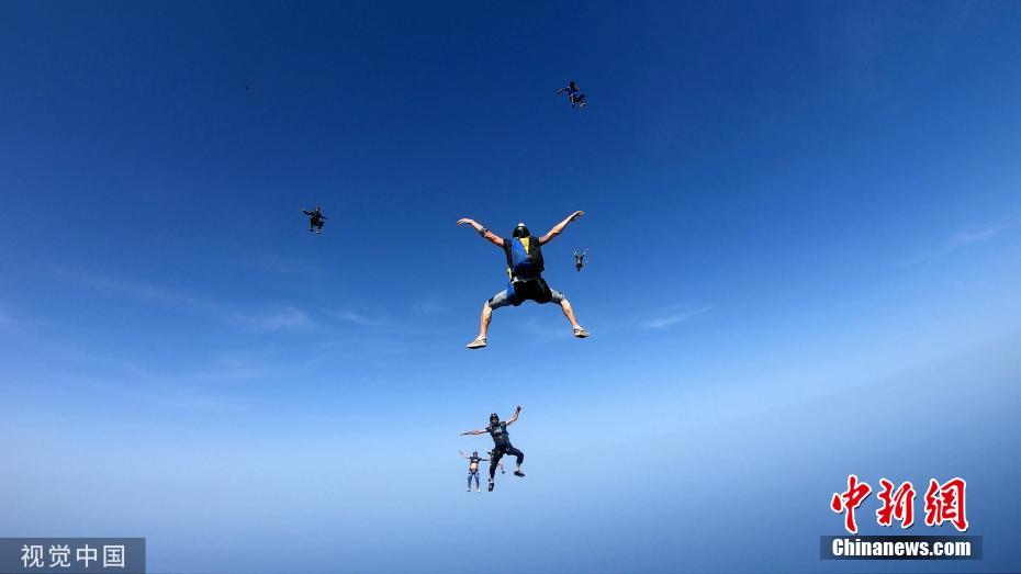 11月20日訊,以色列一群跳傘者在從一萬三千英尺(約3962米)的高空進行跳傘,墜落時盡情嬉戲、舞動和翻跟斗。圖片來源:視覺中國