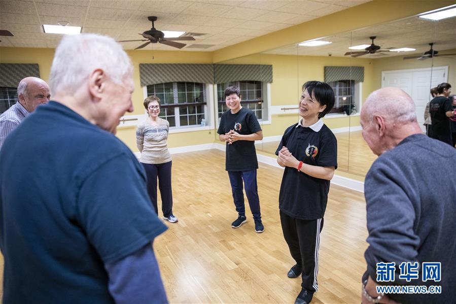 陳思坦的夫人林旭在位于美國紐約長島的一所社區(qū)老年活動(dòng)中心指導(dǎo)老人練習(xí)太極(11月20日攝)。這里是陳思坦夫婦開設(shè)的一個(gè)公益教學(xué)項(xiàng)目。11月的紐約已進(jìn)入初冬,位于美國紐約長島的思坦太極武術(shù)中心依然一片紅火景象,學(xué)員們從5歲的孩童到80多歲的老人,操練著太極拳、太極劍、長拳等武術(shù)招式。這里的主人陳思坦、林旭夫婦,也從早忙到晚,精心指導(dǎo)每一位學(xué)員的一招一式。6歲習(xí)武,22歲成為中國全國冠軍,26歲獲得首個(gè)世界冠軍……直到30歲退役,陳思坦在運(yùn)動(dòng)員生涯中曾獲得過32次國內(nèi)外各類武術(shù)大賽冠軍。36歲那年,懷著以太極拳和中國武術(shù)為媒介向世界推廣中國文化的夢(mèng)想,陳思坦到美國紐約尋找新的舞臺(tái)。經(jīng)過十多年的艱苦打拼,陳思坦夫婦目前在紐約長島、法拉盛和曼哈頓都開設(shè)了長期的課程,思坦太極注冊(cè)在編的各個(gè)年齡段的學(xué)員近千人,有些“高徒”現(xiàn)在自己也開班授課,將太極推向更多地方。陳思坦夫婦現(xiàn)在思考更多的是如何將太極和武術(shù)推廣給更多的美國人,并讓他們理解其中蘊(yùn)含的平衡、和諧的中國文化理念。他們創(chuàng)辦了紐約太極健身氣功活動(dòng)日,在各類學(xué)校和社區(qū)開設(shè)太極或者武術(shù)課程,并利用美國的亞太裔文化月和多元文化節(jié)舉行武術(shù)和太極表演和體驗(yàn)課程,讓更多美國人親眼看到、親身體會(huì)中國武術(shù)的魅力。從2011年起,他們還參與創(chuàng)辦了紐約太極大賽,如今已舉行九屆,吸引了美國、加拿大和中國國內(nèi)的隊(duì)伍參賽,影響力逐漸擴(kuò)大。新華社記者王迎攝