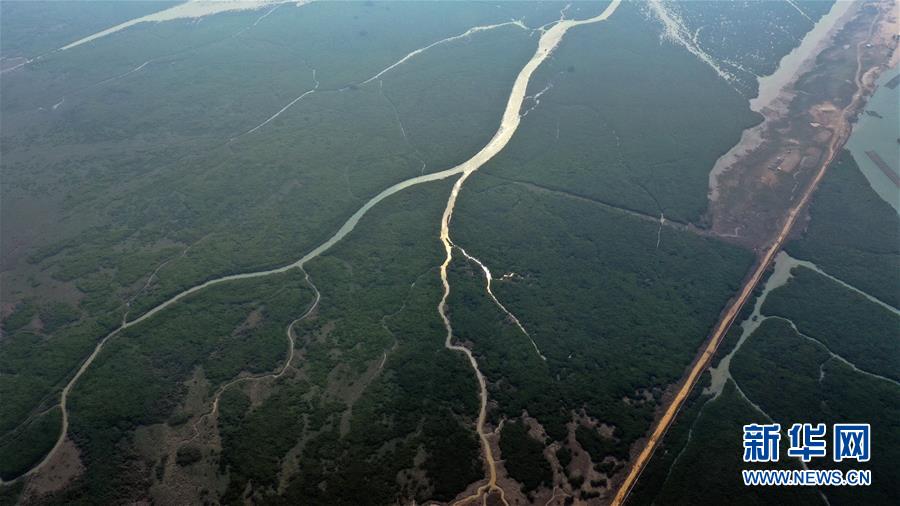 12月21日無人機拍攝的廣西合浦縣黨江鎮(zhèn)更螺圍出??谝痪啊6?,廣西廉州灣海域風(fēng)光別致。新華社記者張愛林?jǐn)z