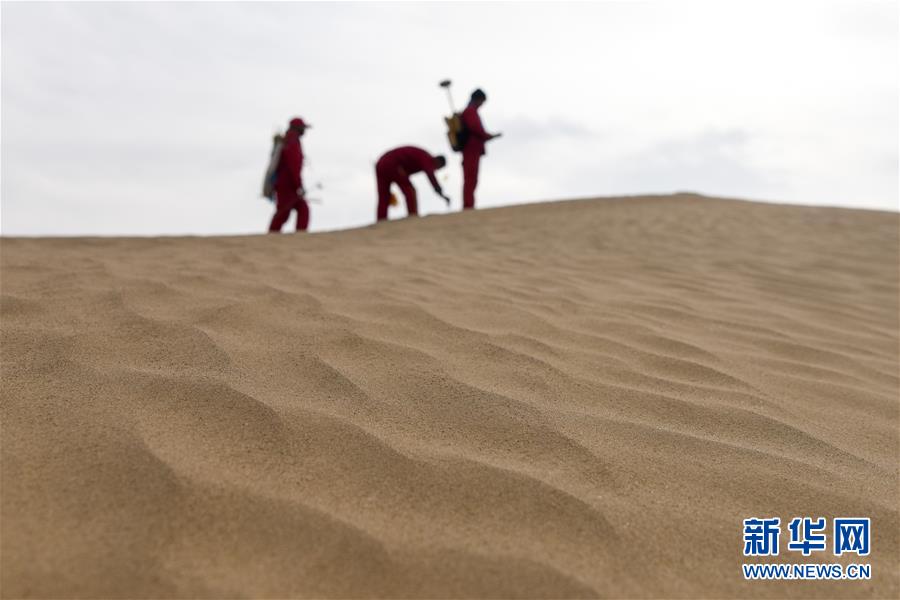 1月13日,測量工在測線上布設(shè)炮點樁號。地球物理勘探是油氣開發(fā)的第一步,相當(dāng)于給地球做CT。物探工人按照嚴(yán)格的測線部署,在相應(yīng)位置鉆井,然后實施地震,采集地震波數(shù)據(jù)??蒲腥藛T通過數(shù)據(jù)組成的“CT片”,就能夠清晰地“看”到地下的地質(zhì)結(jié)構(gòu),判斷哪里埋藏有石油或者天然氣。2019年10月,東方地球物理勘探有限責(zé)任公司塔里木物探處2113隊進入新疆塔克拉瑪干沙漠腹地,開始中古14-21、塔中2兩個區(qū)塊的三維地震勘探。近2000名物探工人將在1000平方公里的范圍內(nèi)一直工作到2020年4月,這也意味著他們將在塔克拉瑪干沙漠腹地連續(xù)度過第14個除夕夜。蘊藏著豐富石油天然氣資源的新疆塔克拉瑪干沙漠有“死亡之?!敝Q,氣候干燥,年降水量在50毫米以下,冬季地表最低溫度超過零下30攝氏度,是世界油氣勘探難度最大的地區(qū)之一。為避開風(fēng)季,物探工人每年9、10月份進入沙漠,一直工作到來年4月,夜以繼日與黃沙、嚴(yán)寒為伴,用辛勤的汗水,為祖國找油找氣。新華社記者丁磊攝