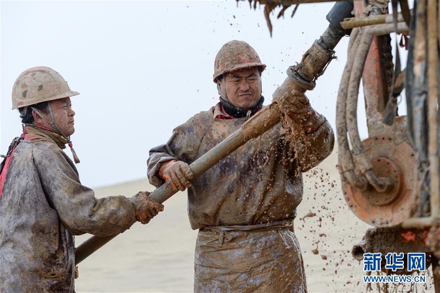 1月13日,鉆井工在連接鉆桿。地球物理勘探是油氣開發(fā)的第一步,相當(dāng)于給地球做CT。物探工人按照嚴(yán)格的測(cè)線部署,在相應(yīng)位置鉆井,然后實(shí)施地震,采集地震波數(shù)據(jù)??蒲腥藛T通過數(shù)據(jù)組成的“CT片”,就能夠清晰地“看”到地下的地質(zhì)結(jié)構(gòu),判斷哪里埋藏有石油或者天然氣。2019年10月,東方地球物理勘探有限責(zé)任公司塔里木物探處2113隊(duì)進(jìn)入新疆塔克拉瑪干沙漠腹地,開始中古14-21、塔中2兩個(gè)區(qū)塊的三維地震勘探。近2000名物探工人將在1000平方公里的范圍內(nèi)一直工作到2020年4月,這也意味著他們將在塔克拉瑪干沙漠腹地連續(xù)度過第14個(gè)除夕夜。蘊(yùn)藏著豐富石油天然氣資源的新疆塔克拉瑪干沙漠有“死亡之?!敝Q,氣候干燥,年降水量在50毫米以下,冬季地表最低溫度超過零下30攝氏度,是世界油氣勘探難度最大的地區(qū)之一。為避開風(fēng)季,物探工人每年9、10月份進(jìn)入沙漠,一直工作到來年4月,夜以繼日與黃沙、嚴(yán)寒為伴,用辛勤的汗水,為祖國(guó)找油找氣。新華社記者丁磊攝