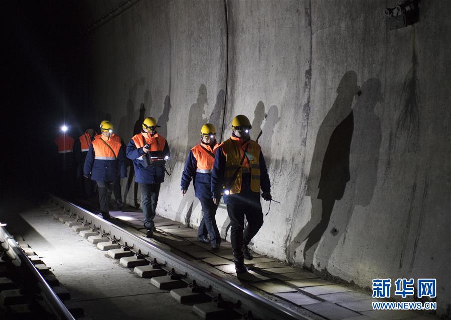 通化通信車間無線工區(qū)鐵路通信工人進(jìn)入全長7088米的灣灣川隧道作業(yè)(1月10日攝)。2020年春運(yùn)1月10日拉開帷幕。新華社記者許暢攝