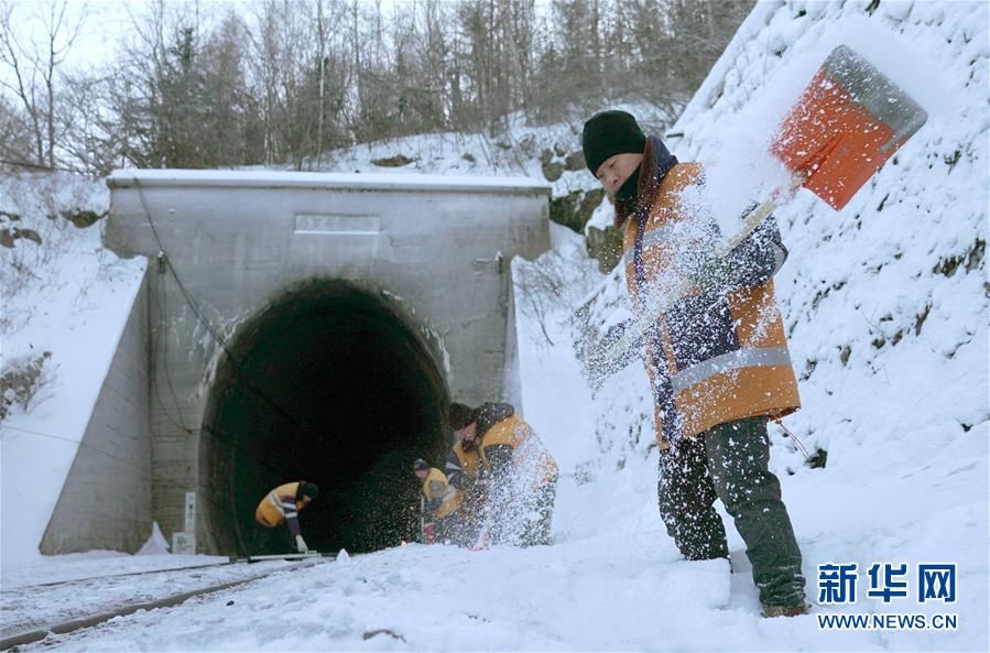 1月8日,西羅奇維修工隊(duì)工人們在西羅奇嶺一號隧道附近等待列車經(jīng)過。新華社記者王毓國攝