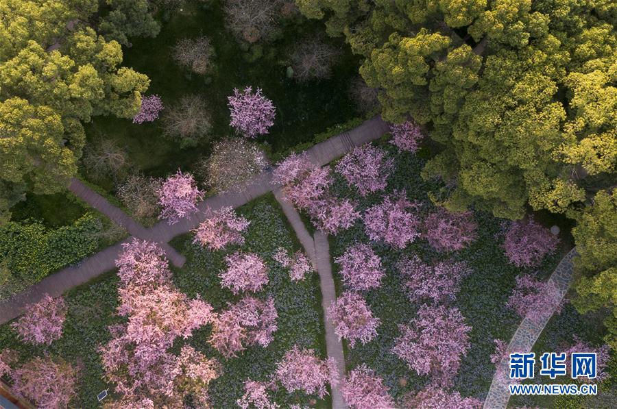 武漢大學(xué)校園一角(3月16日攝,無人機照片)。進(jìn)入三月中旬,武漢大學(xué)櫻花開放。因疫情防控,校園不對公眾開放,為了滿足大眾對美景的期待,武漢大學(xué)開啟“云賞櫻”,3月16日至25日每天上午10時至下午16時,通過網(wǎng)絡(luò)為公眾呈現(xiàn)校園櫻花實景。新華社記者程敏攝
