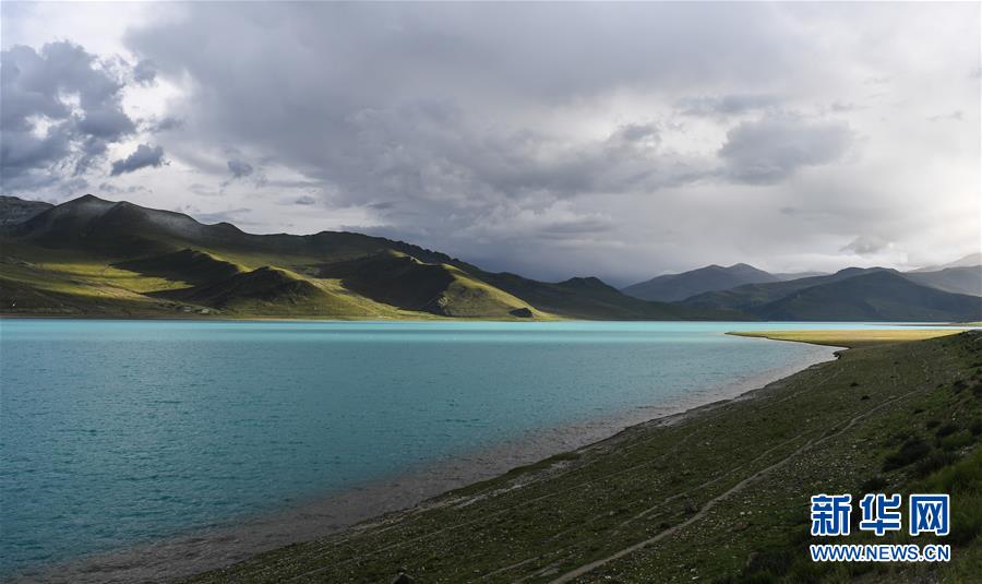 8月28日拍攝的羊卓雍錯風(fēng)光。新華社記者李鑫攝