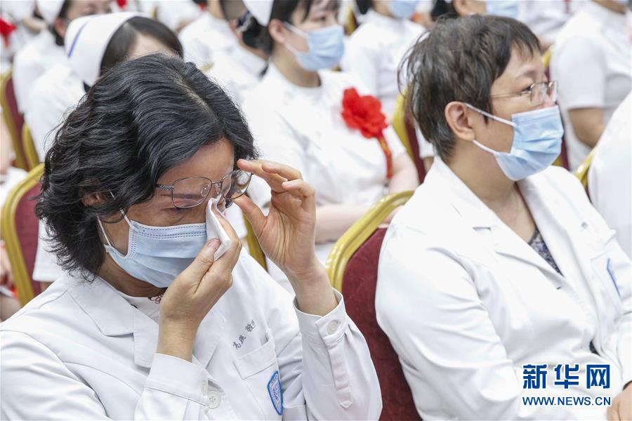 5月11日,北京大學(xué)人民醫(yī)院援鄂抗疫醫(yī)療隊(duì)感控專家高燕教授聽?wèi)?zhàn)“疫”故事時(shí)感動(dòng)落淚。在國(guó)際護(hù)士節(jié)到來之際,北京大學(xué)人民醫(yī)院11日舉辦慶祝護(hù)士節(jié)暨優(yōu)秀集體和個(gè)人表彰活動(dòng),并邀請(qǐng)?jiān)踽t(yī)療隊(duì)護(hù)士代表分享戰(zhàn)“疫”故事。我國(guó)今年護(hù)士節(jié)的主題為“致敬護(hù)士隊(duì)伍,攜手戰(zhàn)勝疫情”。新華社記者張玉薇攝