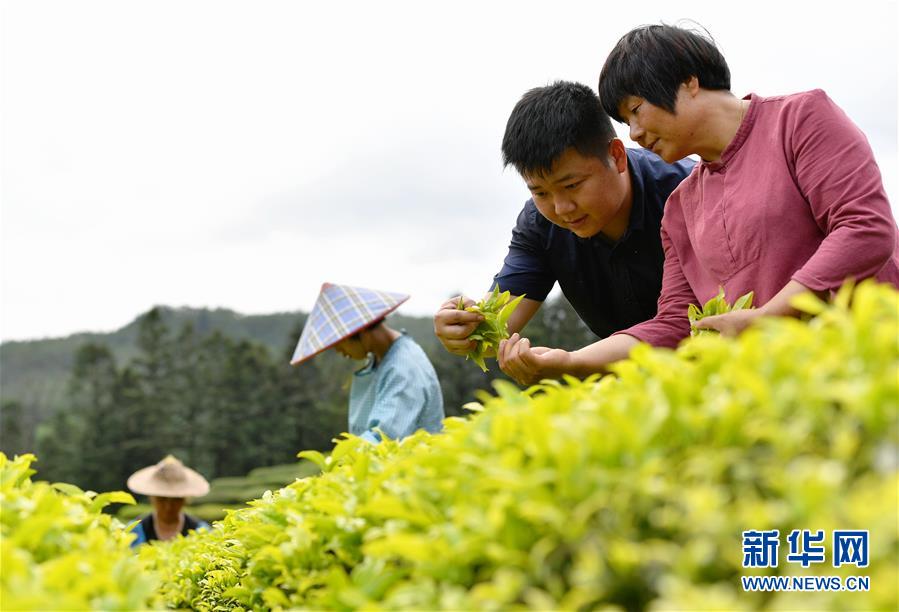 游玉瓊跟方舟一起對(duì)武夷巖茶中的白雞冠品種按白茶做法進(jìn)行創(chuàng)新研發(fā)(5月10日攝)。新華社記者魏培全攝