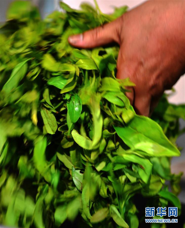 游玉瓊在對(duì)武夷巖茶中的白雞冠品種按白茶做法進(jìn)行創(chuàng)新研制(5月10日攝)。新華社記者魏培全攝
