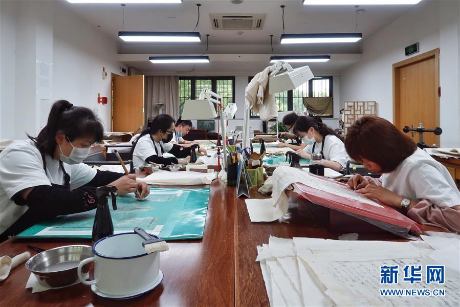 5月13日,古籍修復(fù)師在對(duì)書頁(yè)進(jìn)行修復(fù)。天一閣藏品修復(fù)部目前有修復(fù)師14人,每年約修復(fù)古籍14000余頁(yè)。據(jù)介紹,修復(fù)一冊(cè)古籍通常需要1至2個(gè)月,有的甚至需要1年以上。新華社記者鄭夢(mèng)雨攝
