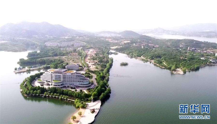 這是5月17日拍攝的雪野湖景色(無人機照片)。山東濟南風(fēng)景區(qū)——雪野湖波光粼粼,岸邊綠樹環(huán)抱,加上星星點點的帆船在湖面搖曳,景色宜人。新華社記者王凱攝
