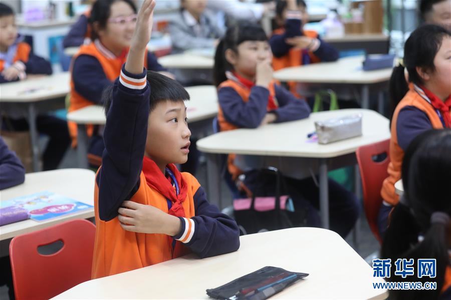 5月25日,貴陽市南明區(qū)苗苗實驗學校的學生在課堂上舉手回答問題。新華社記者楊文斌攝