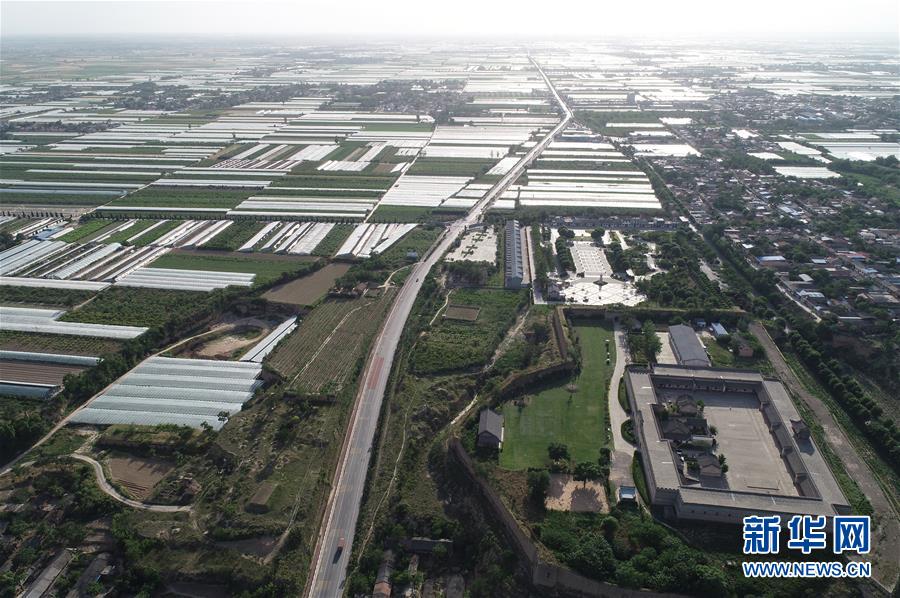 在擁有百余年歷史的豐圖義倉周邊是連綿不絕的現(xiàn)代農(nóng)業(yè)設(shè)施(無人機(jī)照片,5月27日攝)。眼下,陜西渭南市小麥豐收在望。歷經(jīng)百年風(fēng)雨的豐圖義倉對1013噸庫存小麥進(jìn)行輪換出庫,騰出庫容,準(zhǔn)備接收新小麥。豐圖義倉是國家級重點(diǎn)文物保護(hù)單位,位于陜西省渭南市大荔縣境內(nèi),建成于1885年,是一座保存完整、至今仍在儲糧的清代糧倉,現(xiàn)存中央儲備糧5000噸。新華社記者邵瑞攝