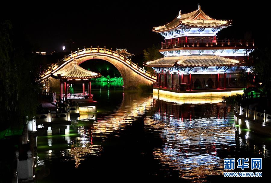 這是6月1日拍攝的河南開(kāi)封御河夜景。近日,古都開(kāi)封陸續(xù)恢復(fù)開(kāi)放小吃夜市、御河夜游等夜間消費(fèi)項(xiàng)目,同時(shí)推出了一批新的夜間游覽活動(dòng),并采取限時(shí)免費(fèi)等措施,促進(jìn)“夜經(jīng)濟(jì)”逐步復(fù)蘇。新華社記者李安攝。
