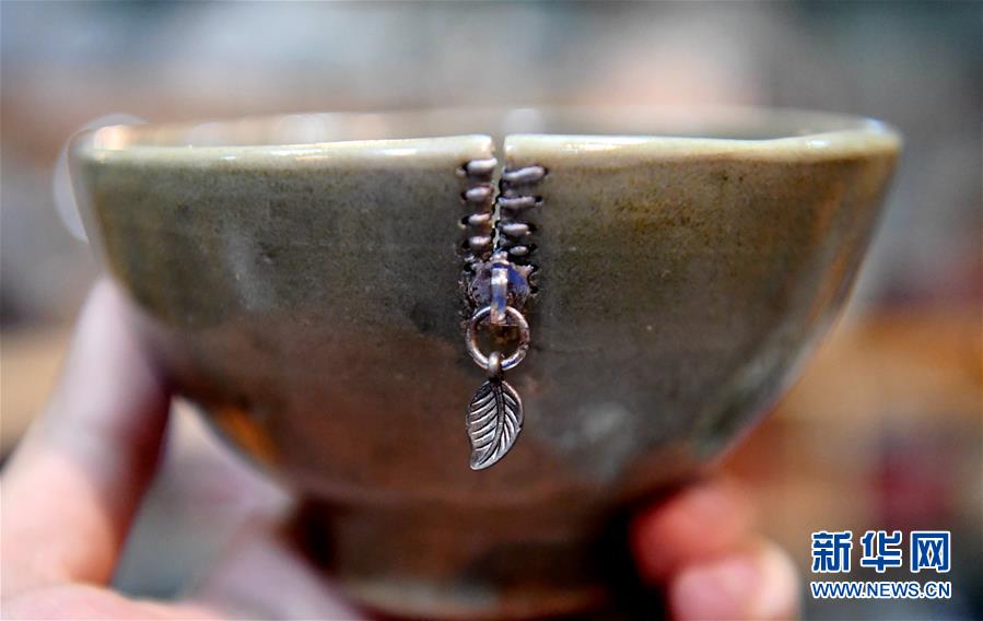 石家莊市鋦瓷匠人李軍航是河北省非物質(zhì)文化遺產(chǎn)項目代表性傳承人,他在修復瓷器的過程中還融入了中國傳統(tǒng)書法與繪畫文化,通過運用殘瓷上的沖線或殘缺,巧妙將鋦釘嵌入其中,大大提升了瓷器本身的藝術性。