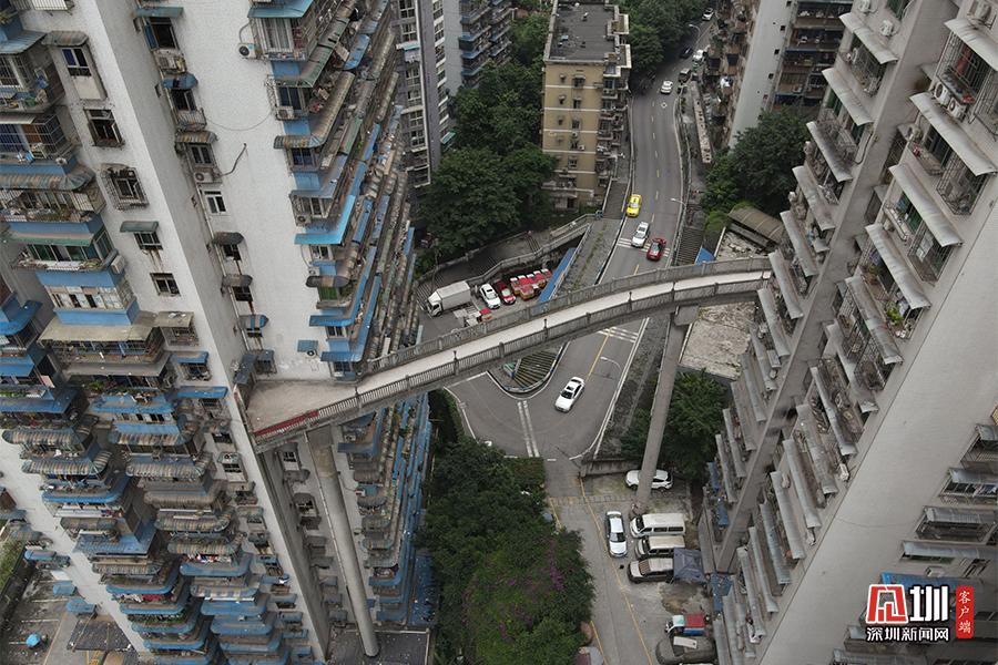 2020年6月10日,重慶市渝中區(qū)解放碑左營(yíng)街的大陽(yáng)溝派出所與鑫龍大廈之間,有一條人行天橋。這座天橋距離地面約40米,橋面寬約2米,長(zhǎng)約30米。天橋一端位于大陽(yáng)溝派出所一側(cè)的地面,而橋的另一端則直接與鑫龍花園A棟13樓相接,盡顯重慶“8D魔幻立體”城市特色。