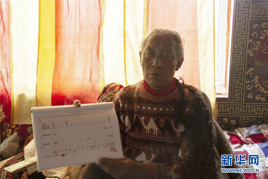 5月30日,四川甘孜藏族自治州理塘縣奔戈鄉(xiāng)卡灰村村民洛登展示自家的“脫貧賬本”。新華社記者李夢馨攝