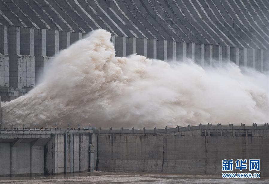 7月19日,三峽樞紐開啟泄洪深孔泄洪。19日20時(shí),三峽水庫(kù)入庫(kù)流量4.6萬立方米/秒,較本輪洪水的峰值6.1萬立方米/秒下降了1.5萬立方米/秒。“長(zhǎng)江2020年第2號(hào)洪水”平穩(wěn)通過三峽大壩。新華社記者肖藝九攝
