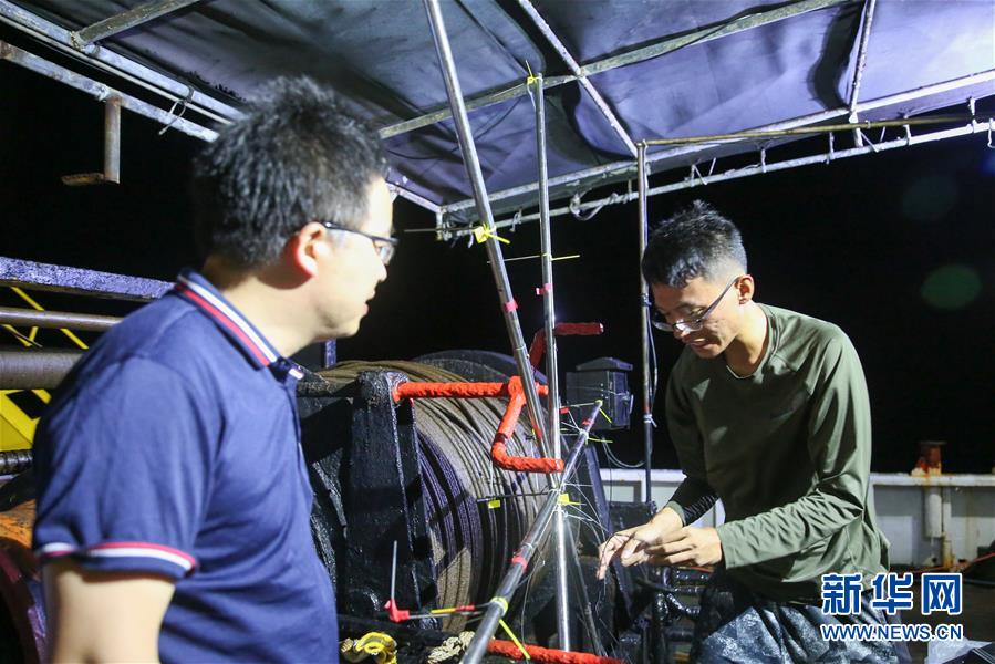 7月27日,科研人員在科考船上觀察動物。新華社記者張麗蕓攝