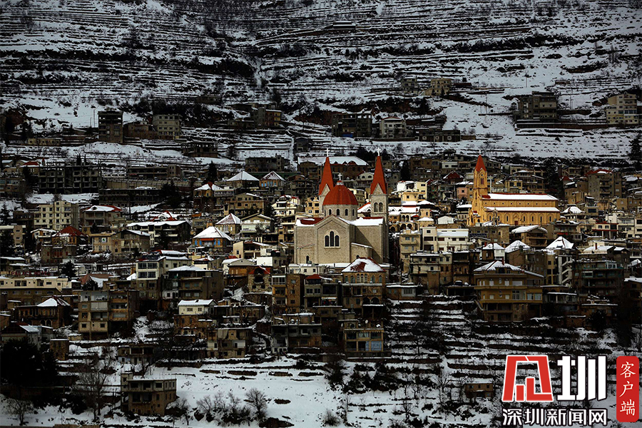 當(dāng)?shù)貢r(shí)間2016年1月4日,黎巴嫩貝魯特北部的基督教城鎮(zhèn)被降雪覆蓋。