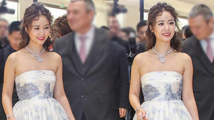林心如穿抹胸裙秀香肩 淺笑盈盈女人味十足