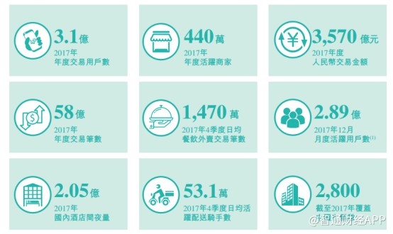 智通財(cái)經(jīng)APP觀察到,2017年美團(tuán)交易額達(dá)到3570億元,同時(shí)公司還擁有3.1億年交易用戶以及440萬活躍商家。此外,2017年公司MAU數(shù)據(jù)已達(dá)2.89億。