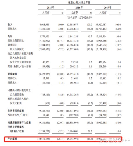 收入快速增長(zhǎng)的同時(shí),公司的虧損正在逐漸收窄。公司2015年虧損59億元,2016年虧損54億元,2017年虧損28億元,離扭虧為盈越來越近。