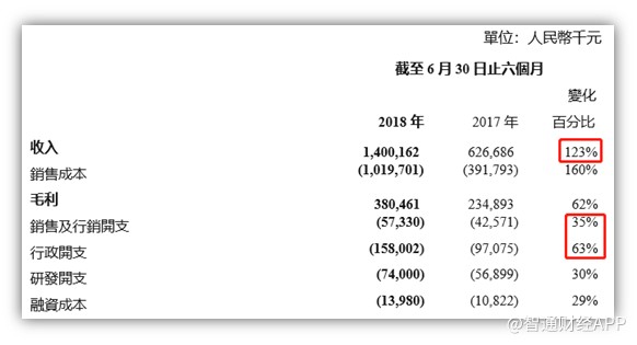 而在2018年上半年取得123%營收增幅的基礎(chǔ)上,匯付天下同期內(nèi)的營銷和行政開支增幅明顯較低,這一點也體現(xiàn)了公司對于成本的控制: