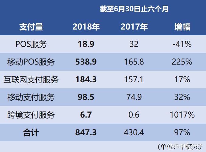 這個數(shù)據(jù),其實是比整個第三方支付行業(yè)的成長還要高出一半以上的——根據(jù)Frost & Sullivan統(tǒng)計的行業(yè)數(shù)據(jù),截至2018年底,中國第三方支付行業(yè)的支付交易總量預(yù)計將達(dá)到人民幣225.3萬億元,較2017年上升47%。