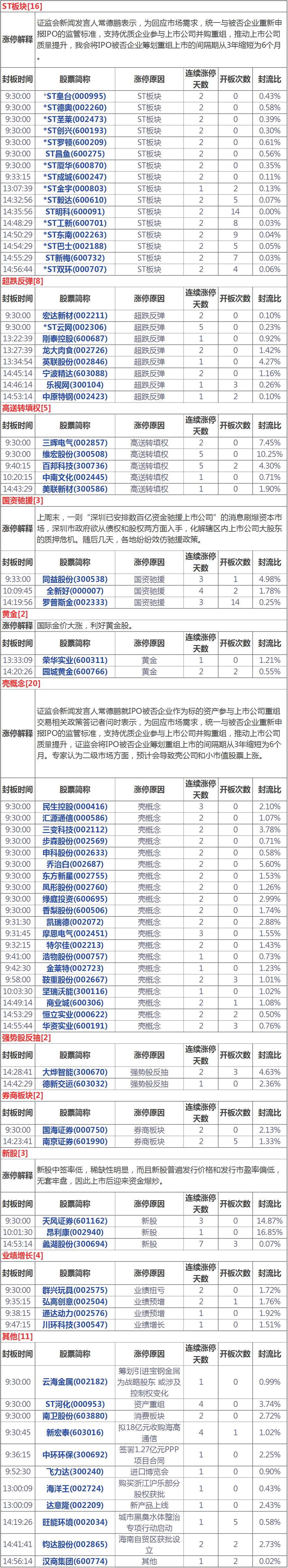 今天漲停家數(shù)較上一交易日有所減少,兩市76家漲停;跌停13家。成交量方面,滬市成交1669億元,深市成交1907億元,兩市總成交額約為3576元,較上一交易日縮量664億元。盤面上,ST板塊、黃金、證券等板塊領(lǐng)漲;白酒、分散染料、國(guó)產(chǎn)軟件、粵港澳大灣區(qū)等板塊領(lǐng)跌。