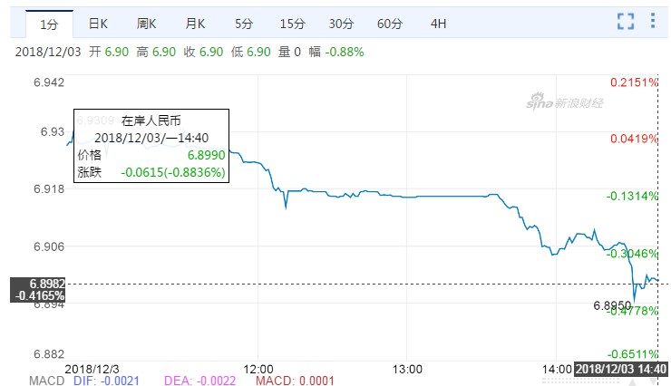 離岸人民幣亦收復(fù)6.9關(guān)口,升530,報(bào)6.8913。