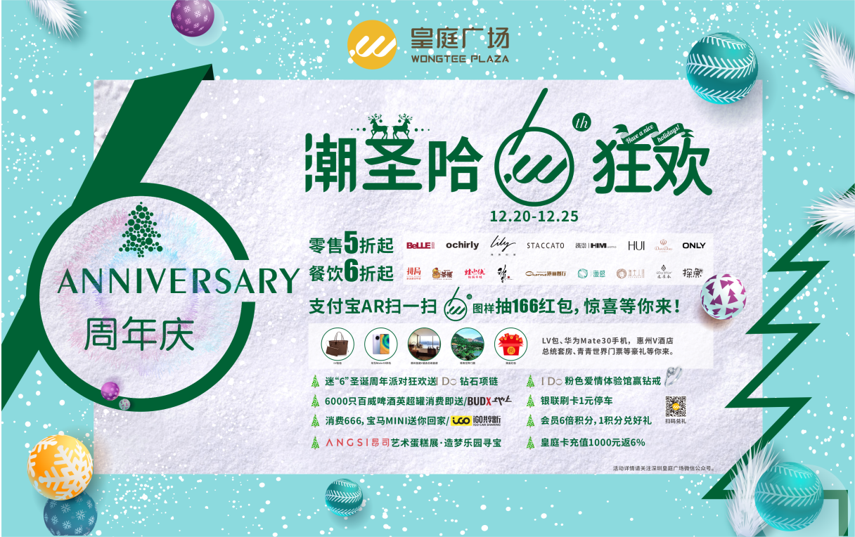 在一定程度上,深圳皇庭廣場如今所綻放出來的光彩,不僅在于與會員的完美互動,更得力于超30萬會員的一路相隨,攜手共進。6周年慶,一方面為感恩所有皇庭廣場會員,展開“會員購物享6倍積分”、“1積分兌禮”等全城返利行動,返利幅度之大吸引眾多高積分顧客參與,有效提高客單價。另一方面,持續(xù)刺激顧客消費,更有12月21日購皇庭卡享超級返利等大力度活動,持續(xù)帶動人氣、擴大宣傳影響。