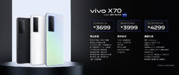 vivo X70系列售價(jià)在發(fā)布會(huì)中公布,vivo X70 Pro8GB+128G版、8GB+256GB版、12GB+256GB版和12GB+512GB版本價(jià)格分別為4299元、4599元、4799元以及5299元;vivo X70 Pro+8GB+256GB版、12GB+256GB版和12GB+512GB版本售價(jià)分別為5499元、5999元以及6999元;vivo X70售價(jià)3699元起。