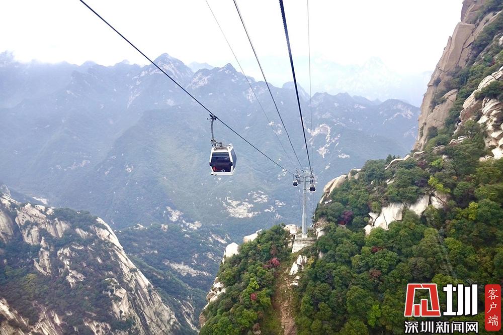 華山西峰的太華索道是迄今為止世界上第一條采取崖壁開鑿硐室站房、兩上兩下的起伏式走向、設(shè)中間站的單線循環(huán)脫掛式索道,總計投資5億余元建設(shè)。李酮攝。