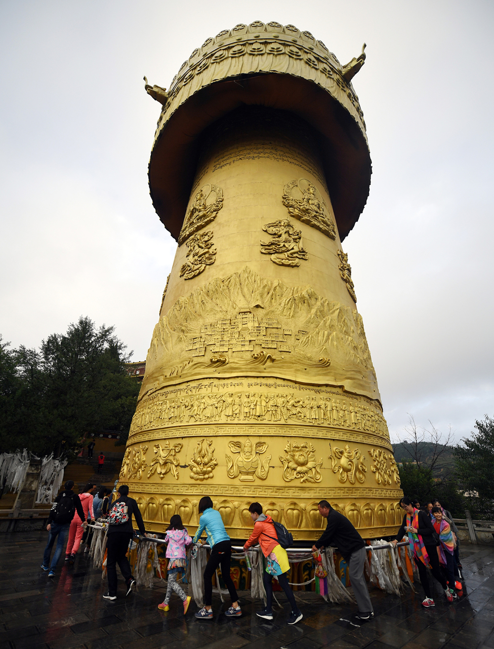 隨著我國(guó)藏傳佛教信徒聚居區(qū)經(jīng)濟(jì)社會(huì)的發(fā)展,從2009年起,在云南、青海、四川、甘肅四省先后建起了5座領(lǐng)先一時(shí)的“世界最大轉(zhuǎn)經(jīng)筒”。李仁奇 攝