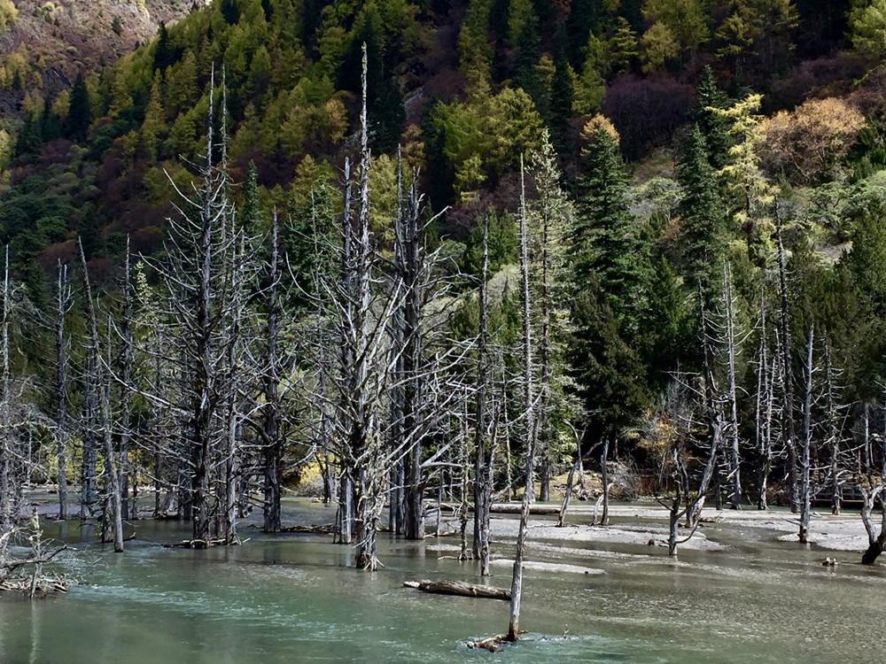 枯樹灘,因地質災害導致河流改道,淹沒大片原始樹木,雜木鈣化后留下一片樹樁置于河灘,故稱“枯樹灘”。李仁奇 攝
