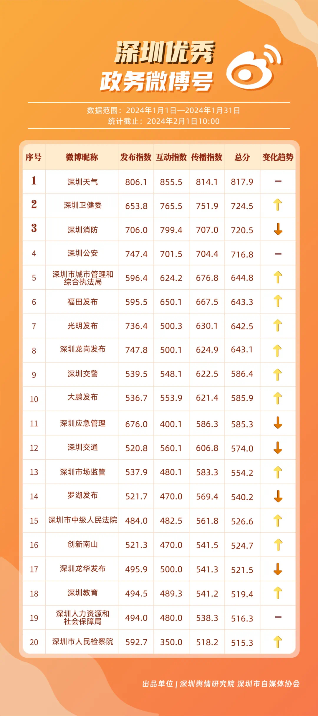 深圳新聞網(wǎng)2月9日訊(記者 陳曉君 實(shí)習(xí)生 張馳)2月8日,深圳輿情研究院、深圳市自媒體協(xié)會聯(lián)合推出《深圳優(yōu)秀政務(wù)新媒體矩陣》(2024年1月期),市衛(wèi)生健康委、市氣象局、福田區(qū)、光明區(qū)、龍崗區(qū)、龍華區(qū)、市公安局、市應(yīng)急管理局、市交通警察局、羅湖區(qū)的新媒體矩陣獲評“深圳優(yōu)秀政務(wù)新媒體矩陣”。這些矩陣在內(nèi)容發(fā)布、受眾互動和信息傳播方面取得了較好成績,并在深圳政務(wù)新媒體規(guī)范有序發(fā)展進(jìn)程中發(fā)揮著積極作用。