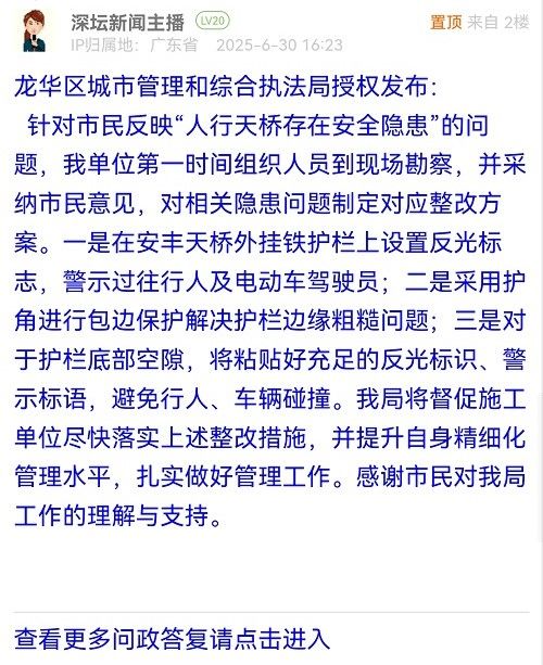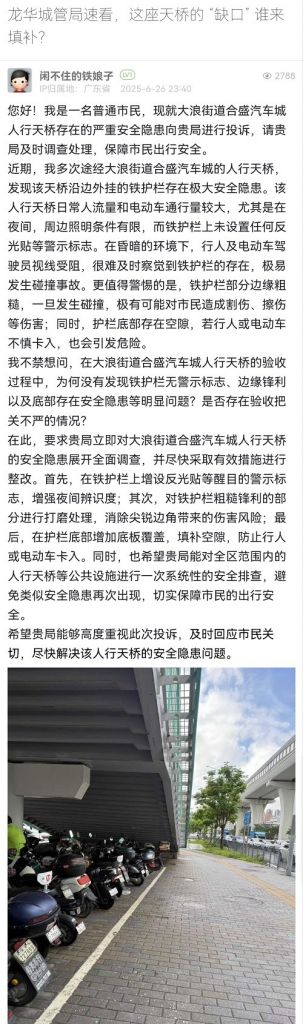 16. 帖文《龍華城管局速看,這座天橋的 “缺口” 誰來填補(bǔ)?》