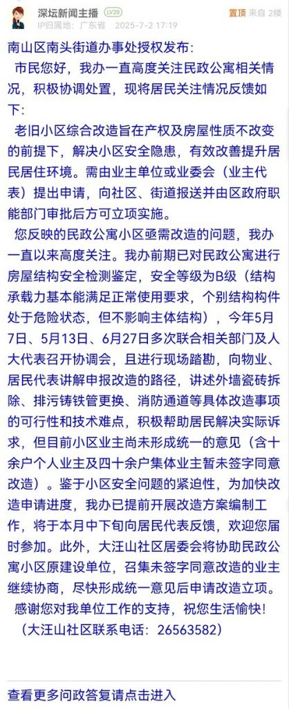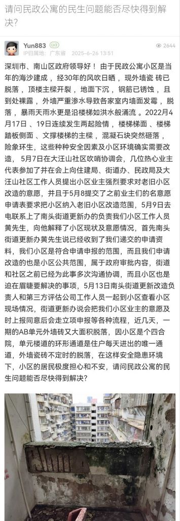 25. 帖文《請(qǐng)問民政公寓的民生問題能否盡快得到解決?》