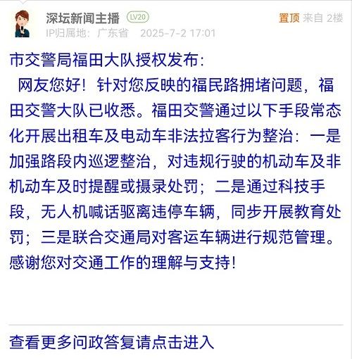24. 帖文《反映福田區(qū)福民路西往東方向經(jīng)常塞車》