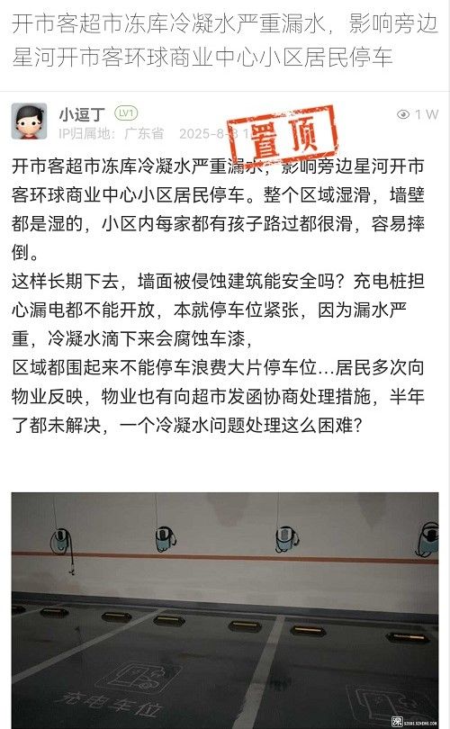 24. 帖文《開市客超市凍庫冷凝水嚴(yán)重漏水,影響旁邊星河開市客環(huán)球商業(yè)中心小區(qū)居民停車》